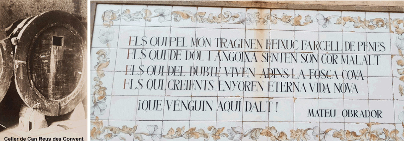 L’any 1895 Miquel Reus Bennàsser es casà amb Maria Antònia Bordoy Oliver quan ell tenia 54 anys i ella 20 anys a l’església del Convent de Felanitx la qual s’omplí de gent que volia veure la festa. Ella era de Bunyola i 25 anys mes jove que el seu espòs. Ma mare, Mariantonia Reus Manzanares (1926 – 2007), me va contar que la seva avia, a la que no va conèixer, sovint pujava en el terrat de la casa de Felanitx per voure ses muntanyes de la serra de tramuntana que tant enyorava. Aquesta circumstancia me va angoixar i la angoixa va créixer quan el meu padrí Miquel Reus Manzanares (xxxx – xxxx) me va contar que el seu avi, quan tenia 25 anys, havia assistit en el bateig de Mariantonia Bordoy i que en aquell moment va dir: ”aquesta serà la meva esposa” i així va ser.
