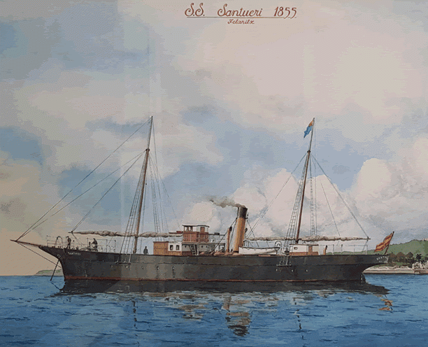 L’any 1883, en que el besavi era president del Banc de Felanitx i seguia essent batle, junt amb altres empresaris felanitxers compraren un vapor i li posaren el nom de Santueri. El Santueri era un vaixell de ferro de 53 metres d’eslora i motor de 160 cavalls que li permetien transportar 158 tones de carrega. Havia estat construït l’any 1855 a Newcastle i primer havia traslladat passatgers entre Londres i Hamburg, a partir de 1866 ho va fer entre França i Alger i posteriorment ja amb bandera espanyola entre Barcelona y Alger fent escala a Maó i Palma. Finalment l’any 1883 va ser adquirit pel consorci d’empresaris de Felanitx. Se sap que el mes d’agost de 1890, navegant de Tarragona a Tolón va rompre l’eix de l’hèlix i va ser venut. Els anys que tengué base a Portocolom majoritàriament exportava vi al port francès de Sete i de tornada solia transportar blat per la fabrica de Farinera Balear des Pont d’Inca.